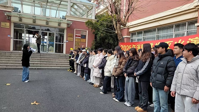 演习环节中,在学院辅导员、专任教师与保卫处老师的共同引导下,同学们迅速进入应急状态,用毛巾严密捂住口鼻,弯腰低姿沿安全通道快速有序撤离至指定集合点。集结完毕后,学院党总支副书记钱星和校保卫处宋嘉老师分别作动员讲话,重申“人人会应急”的核心宗旨,强调校园消防安全对守护师生平安、营造和谐环境的重要意义。结合元旦假期与寒假将至的时间节点,两位老师特别叮嘱全体师生,要将消防安全意识融入日常学习生活,时刻绷紧安全弦,做到防患于未然。随后,消防队员结合校园场景,围绕教学楼、宿舍等重点区域的明火隐患排查、安全用电规范展开系统讲解,细致传授险情初期处置技巧,同时着重强调火灾逃生中“沿墙行进”的关键要点。在灭火器实操训练环节,消防队员现场演示二氧化碳灭火器“辨风向、站上风口、拔保险、握喷嘴、对根部”的规范操作流程,鼓励同学们大胆尝试,同学们踊跃参与、认真实操,快速掌握了灭火器使用要领。